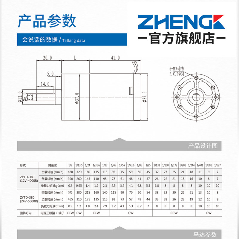 Ortho ZGA37RE central axis DC decelerated motor micro 380 small motor positive reversal adjustable throttle 12V24V