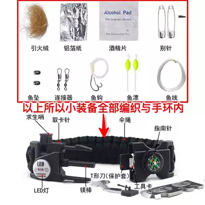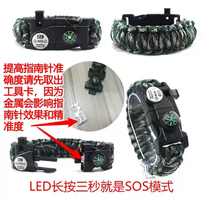 Outdoor multi-function umbrella rope woven bracelet Wilderness survival kit Bracelet with LED light fishing outdoor equipment