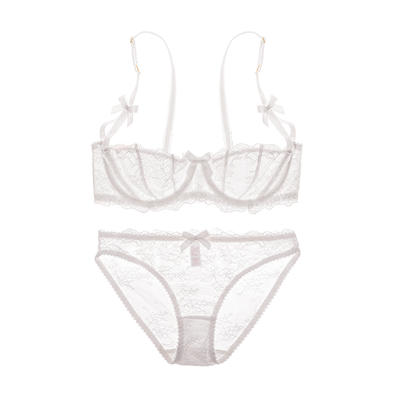 French girl 1/2 half cup ultra-thin small chest gather bra sexy lace big chest underwear set