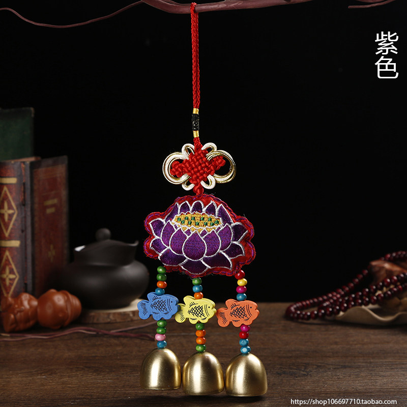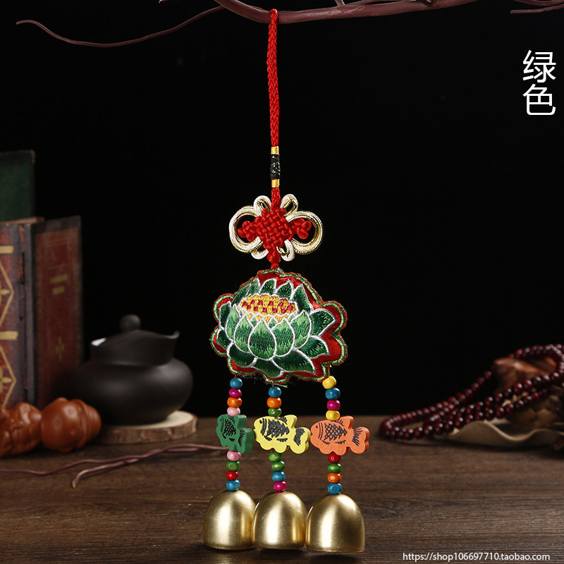 Batch of new handmade windbells Yunnan ethnic wind bifacial embroidered wind Suzuki three-bell car pendant featured hanging decoration