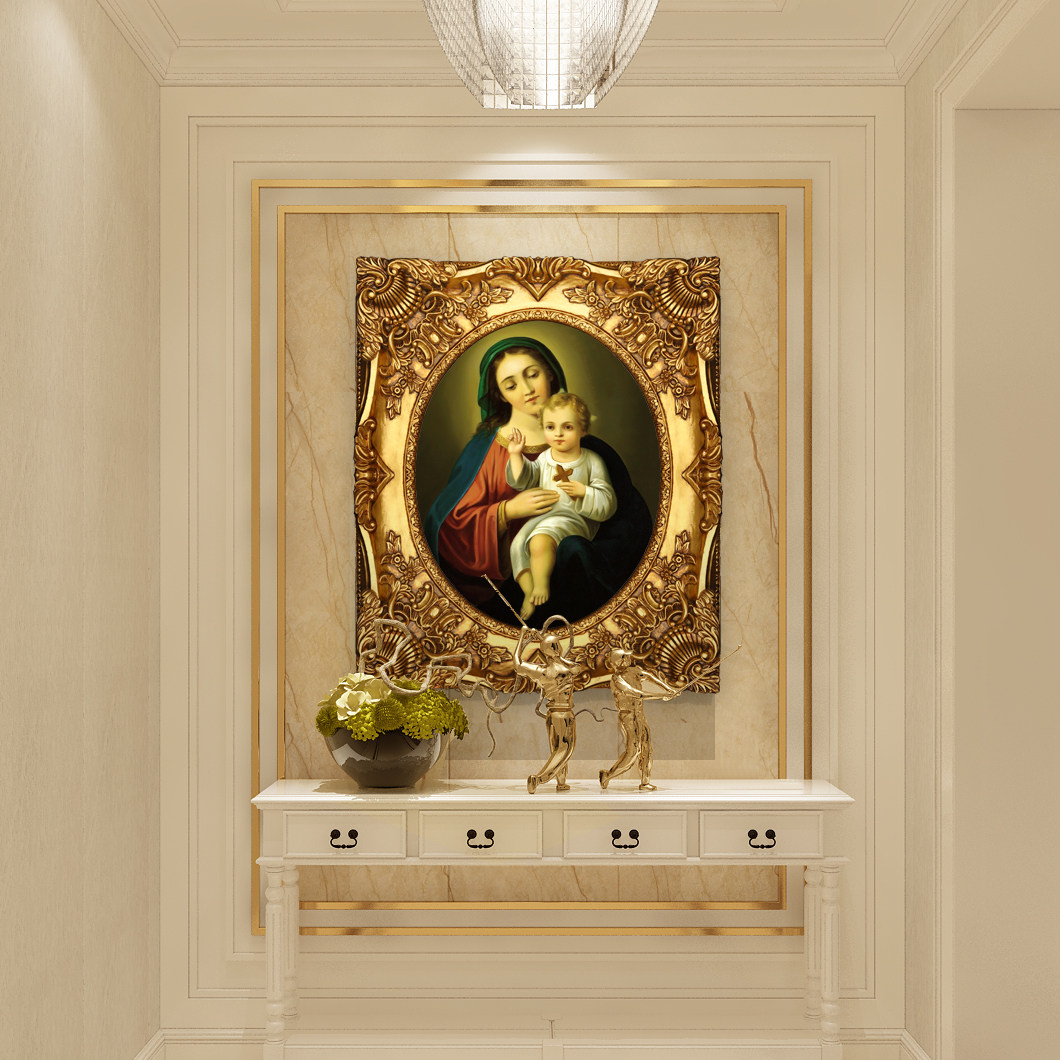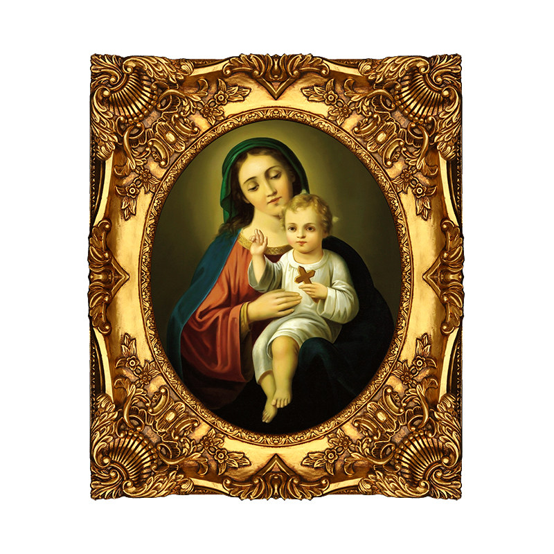 Blu-Style Oil Painting Genguan Aisle Living Room Bedroom Hanging Painting of the Virgin Mary Decorative Painting Daffin Village