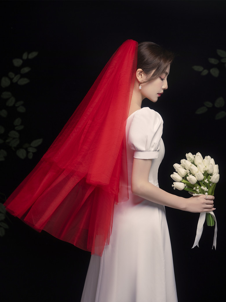 Bride wedding main wedding veil French wedding double-layer puffy headdress Champagne color short simple photo props
