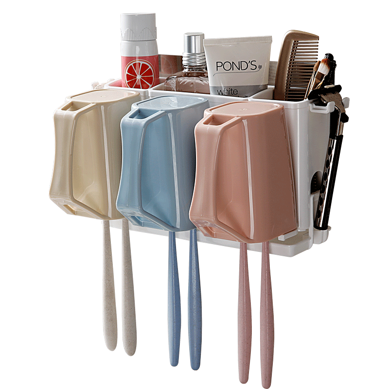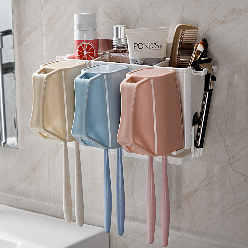 Shuangqing toothbrush rack rack free punch suction cup bathroom tooth cup cylinder toothpaste combination set suction wall hanging storage box