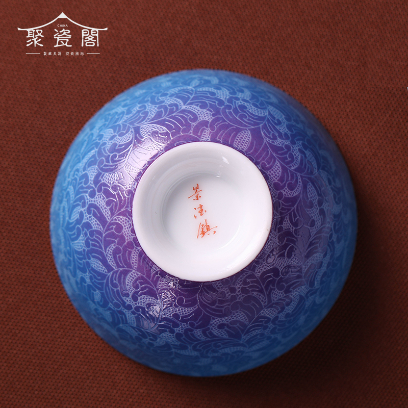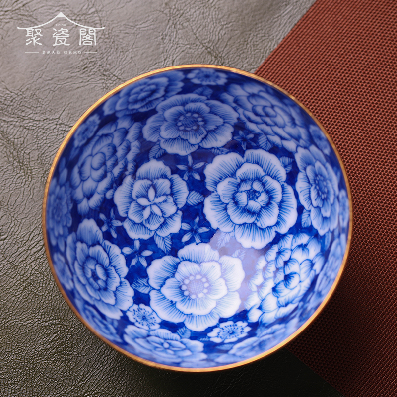 Jingdezhen handmade blue and white pastel tie road flower cup tea single cup ceramic kung fu cup master cup pu 'er cup