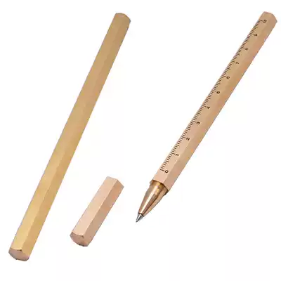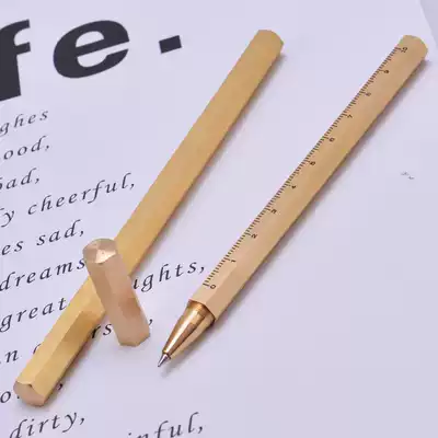 Six-sided brass pen metal pen copper pen neutral signature signature pen with scale creative lettering personality gift