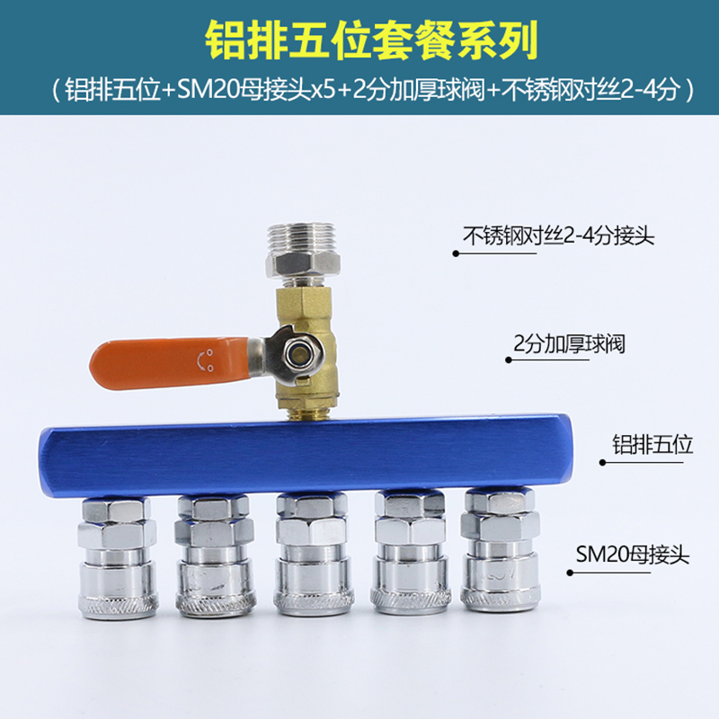 Multi-line aluminum strip Two-position multi-line aluminum strip Three-position multi-line aluminum strip Four-position multi-line aluminum strip Five-position row plug two-position female row plug two-position ball valve Stainless steel 2-2 double male