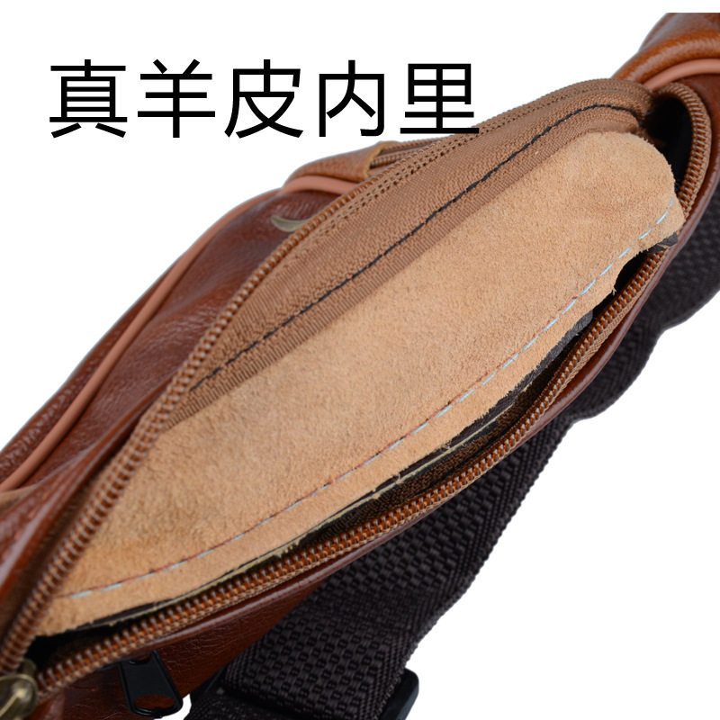Running Lakes Men Genuine Leather Waist Surround Body Bag Multifunction Goat Leather Men's Style Casual Chest Bag Satchel Stall