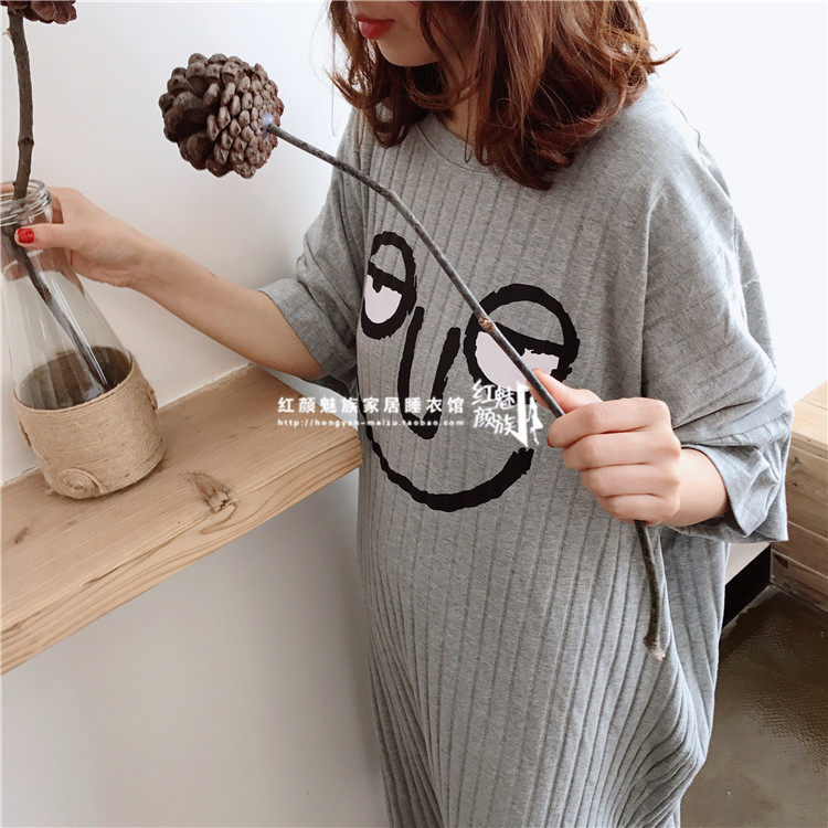 Summer thin cotton nightdress Korean version loose large version plus size pajamas for women Sweet cartoon long skirt can be worn outside