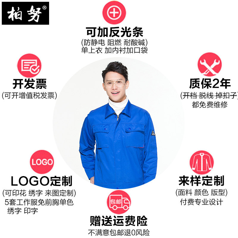 Spring Autumn Long Sleeve Workwear Suit Antistatic Wear Resistant Pure Color Labor clothing Steam repair clothes workwear Customized