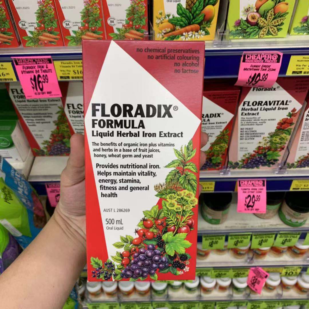 Australian German iron dollar Floradix organic fruit and vegetable nutrient solution for maternal iron 500ml sends gas column