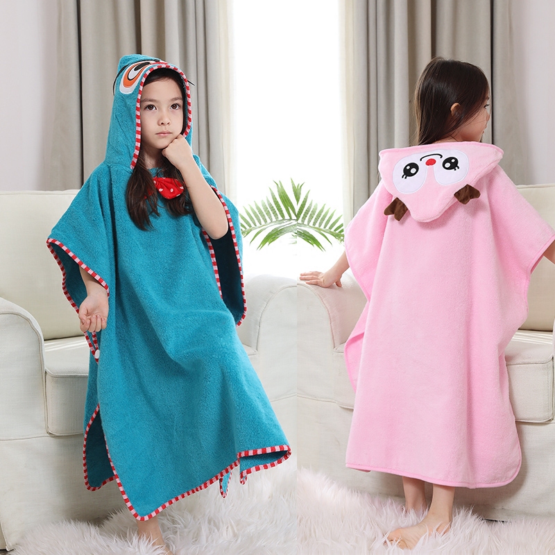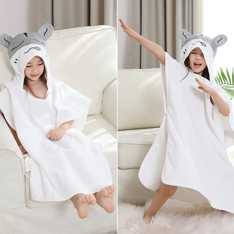 Child bath towels cloak with cap pure cotton absorbent bath towel male and female baby bathrobe swimming for home special large child