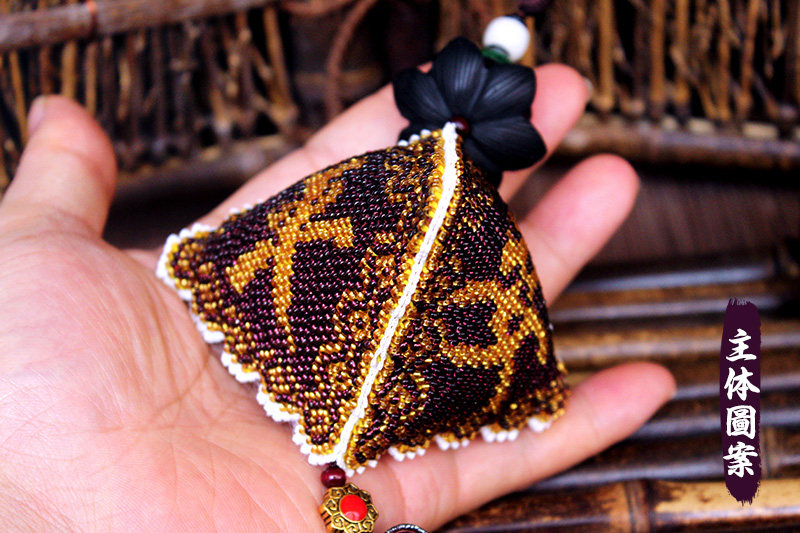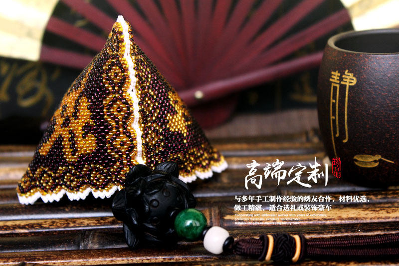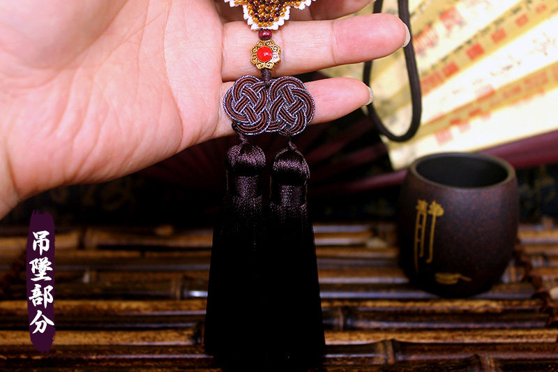 Embroidered Ping An Fu finished ebony lotus car pendant cross stitch handmade bead embroidered ancient windmill with ornaments