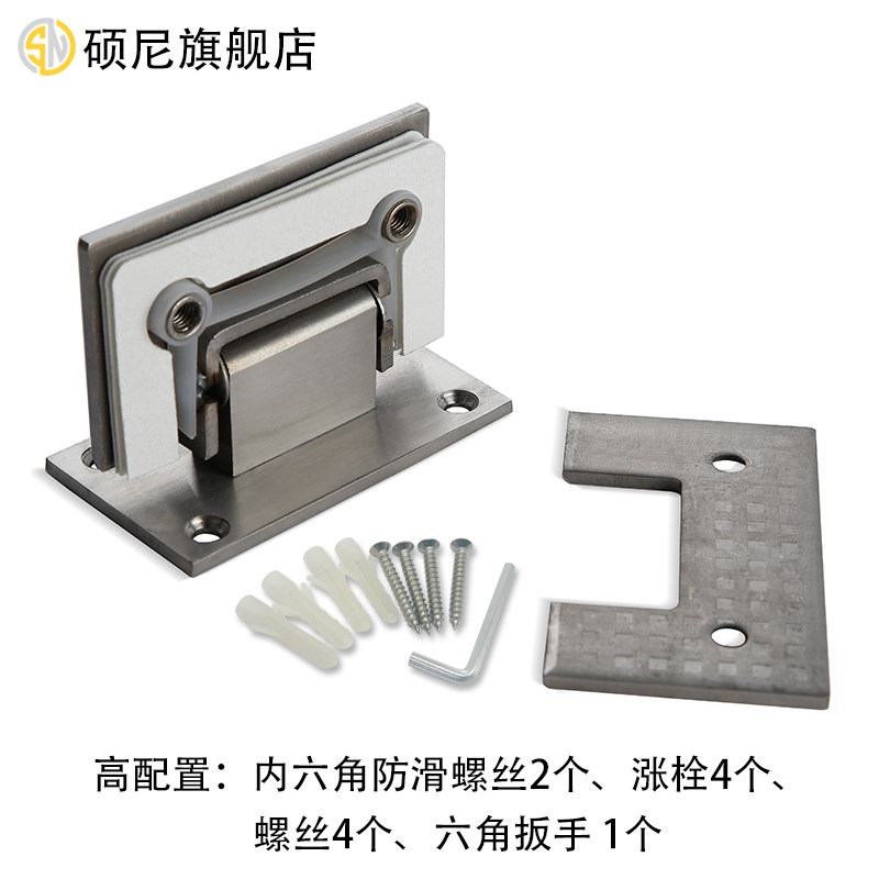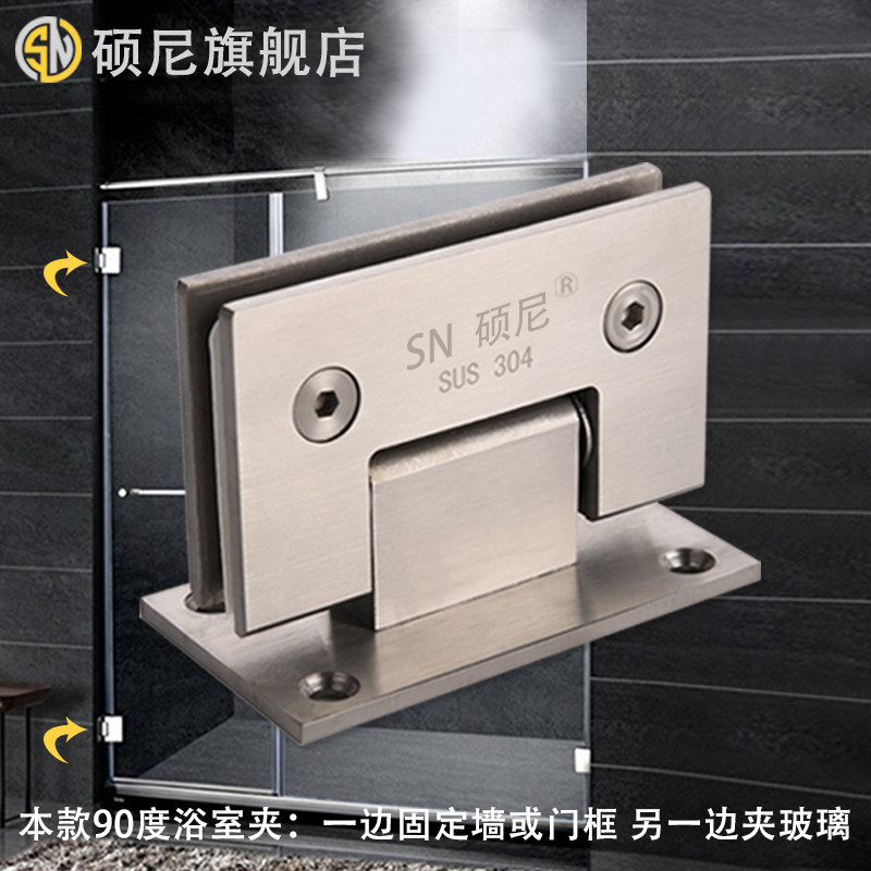 Shoni 304 stainless steel frameless glass door tempered hinge 90 degree two-way bathroom clamp hinge shower room binder