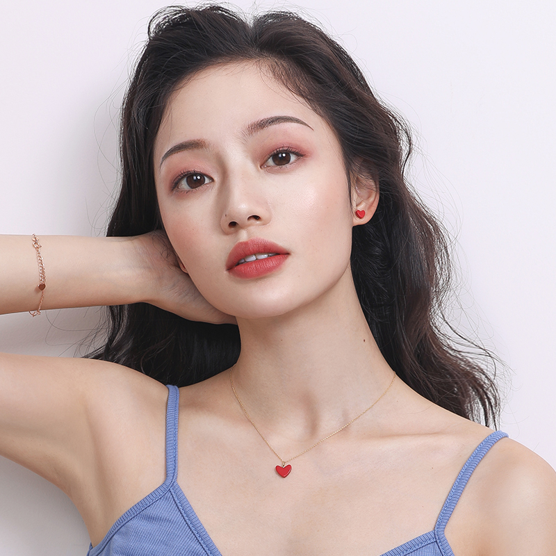 6 Guifu Little Red Heart Necklace Pendant 18k Gold Platinum Rose Gold Color Golden Flash O Necklace Lock Bony Woman