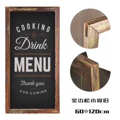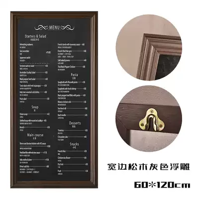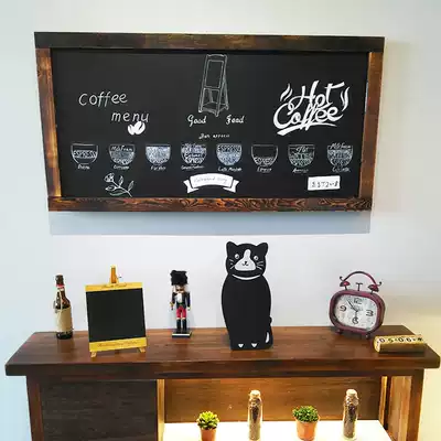 Literary retro style solid wood frame magnetic wall-mounted small blackboard shop decoration home writing fluorescent board pen powder