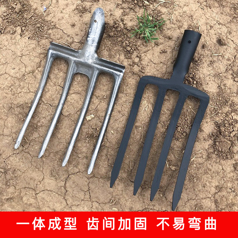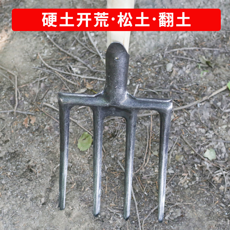 Agricultural ploughing and soil gardening tools pitchfork loose soil four-tooth steel fork lawn fork large iron fork cleaning weed fork