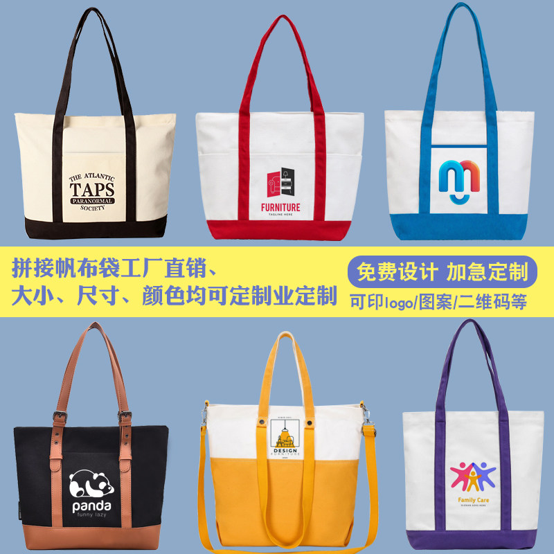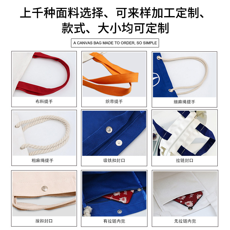 Custom canvas bag blank stitching zipper diagonal eco-friendly cloth bag shopping bag custom canvas bag with printed logo pattern