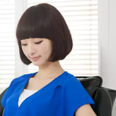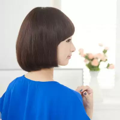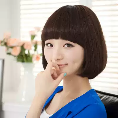 Wig female short hair bobo head button handsome wave fluffy natural Lady temperament repair face round face real hair Silk