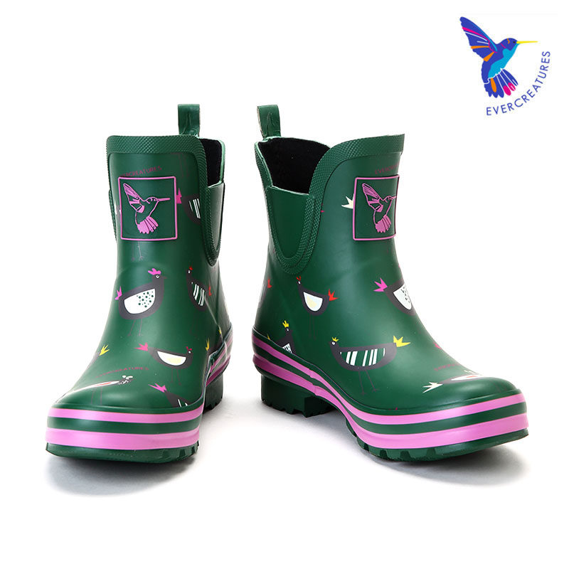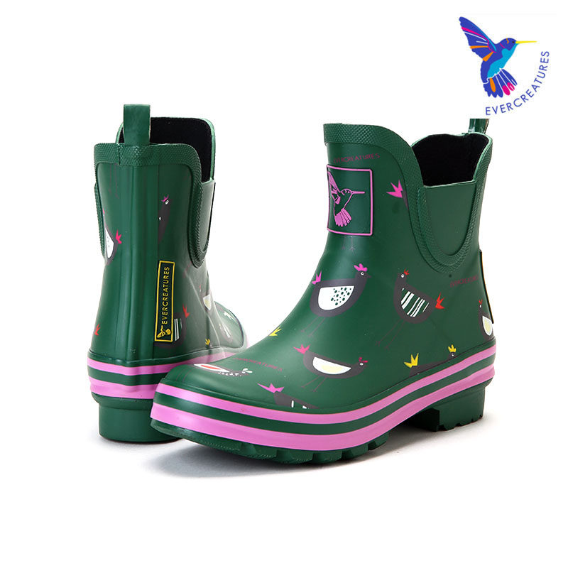 UK Evercreures Rain Shoes Women Rain Boots Non-slip Rain-Proof Water Shoes Water Boots Cartoon Small Chicken Printed Short Cylinder