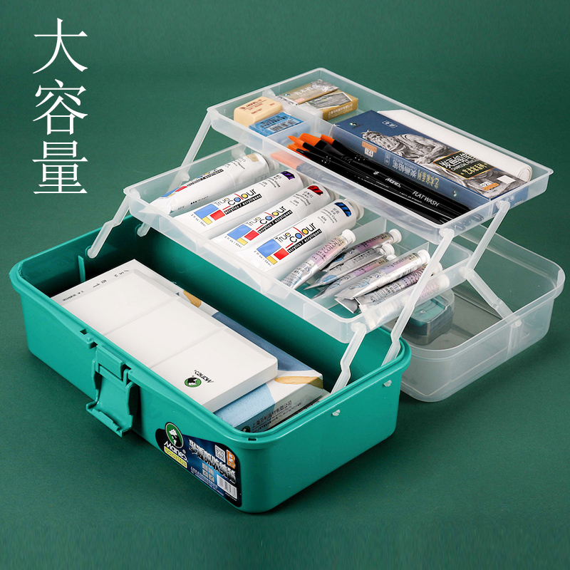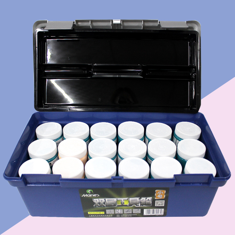 Marley brand gouache toolbox Multi-function art toolbox Transparent primary school painting Chinese painting toolbox Painting toolbox with paint box storage box Gouache box