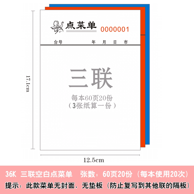 Large Number Empty White Dot Menu No Carbon Rewrites A United Didlian Triple Premium Quality Clear Hotel Receipt Ticket CATERING BILL