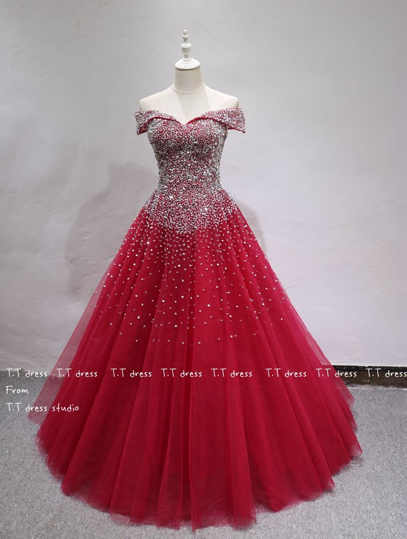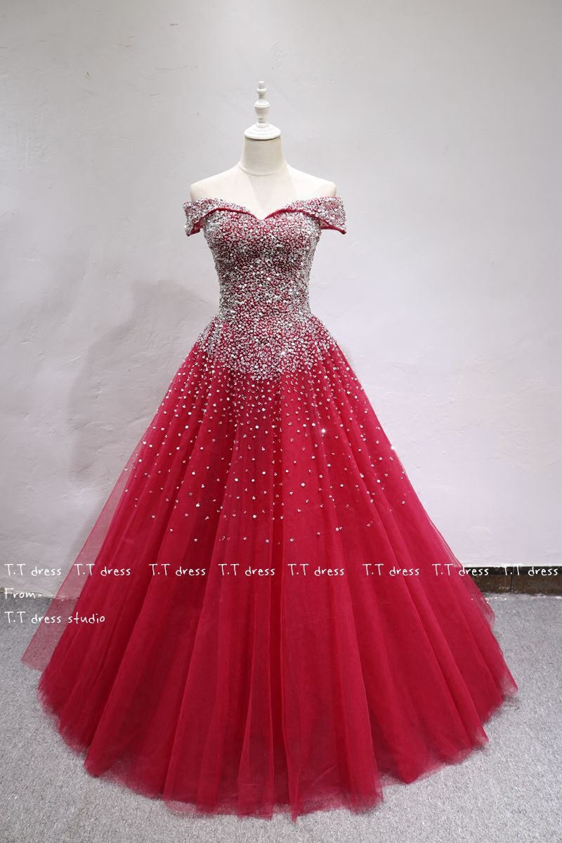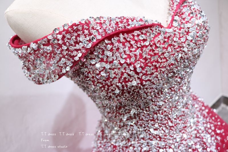 Luxury sparkling heavy handmade red wedding dress thin bride evening dress toast back to the door banquet large size evening dress long version
