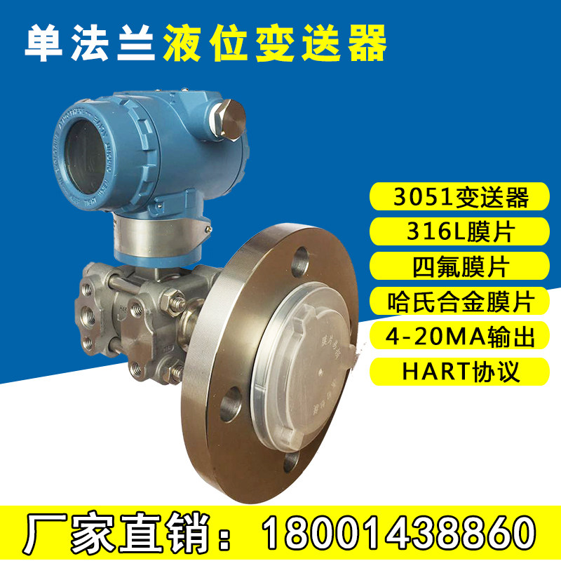 3051 Single flange liquid level meter Double flange differential pressure transmitter capacitor high precision PTFE anti-corrosion diaphragm