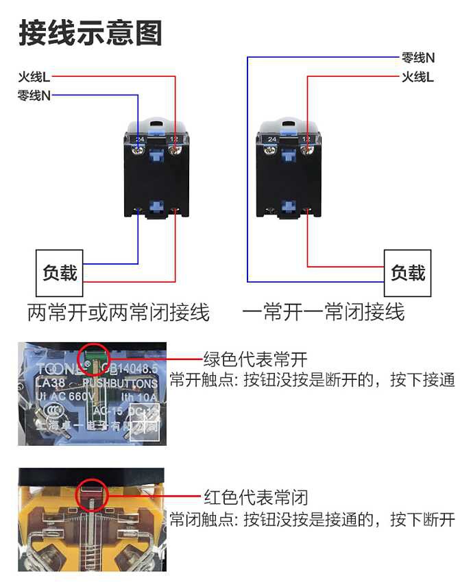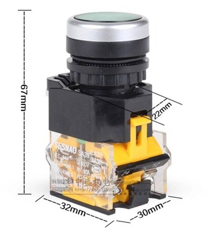Button switch self-reset LA38-11BN start flat button switch red green 220V bored 22mm motor accessories