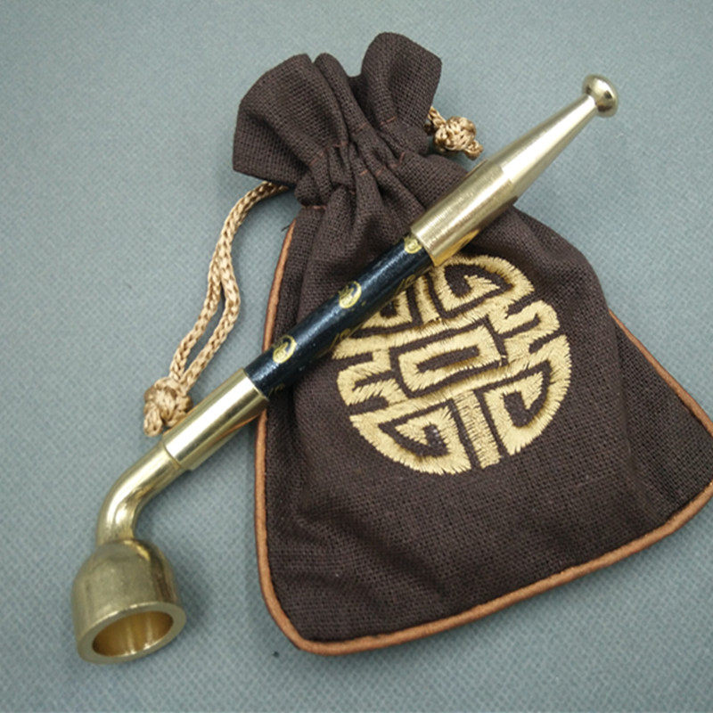 Traditional old-fashioned dry smoke gun pure copper large number of tobacco bag pan dry cigarette bag Northeastern old man dry smoke rod long smoke bucket