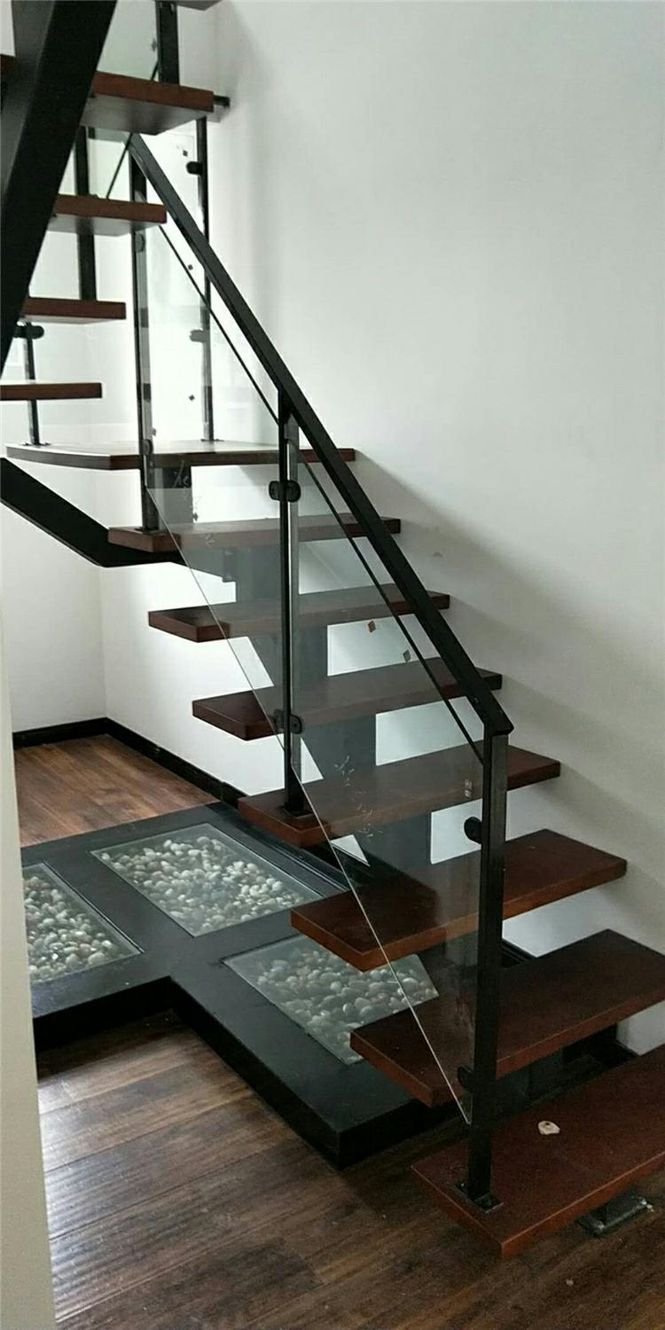 Wuhan indoor living room balcony railings stair handrails guardrail fence stainless steel tempered glass fence iron art