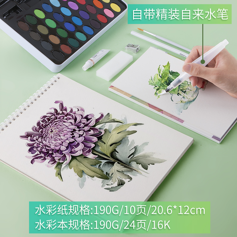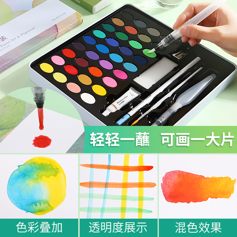 ⭐ Store manager recommended ⭐ (8 brushes + watercolor book) 36 colors classic black 38 piece set-