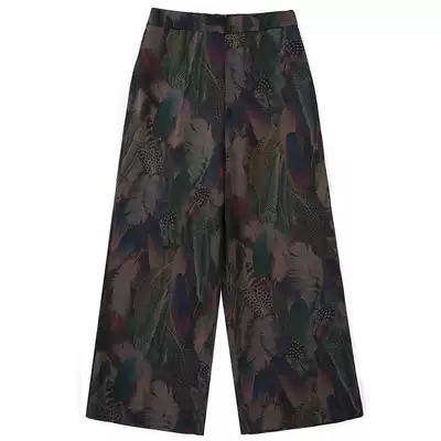 Middle-aged and elderly wide leg pants women Summer thin hanging loose straight tube elastic waist women's pants middle-aged mother ankle-length pants