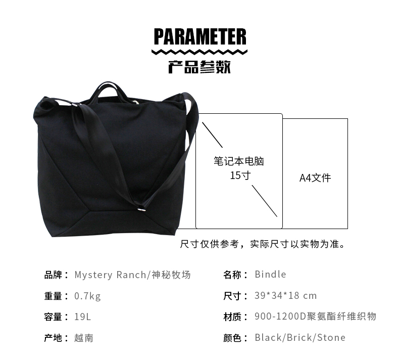 Mystery Ranch Mystery Ranch Bindle Urban Shoulder Bag Travel Portable Leisure Bag for Men and Women