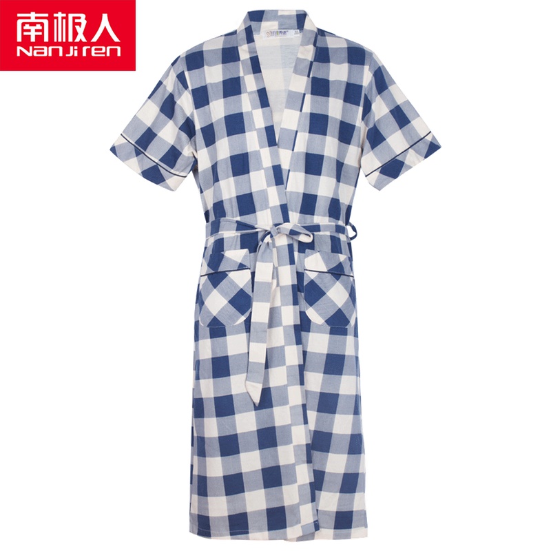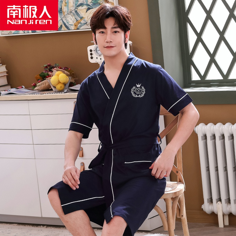 Young and middle-aged men's pajamas summer short-sleeved cotton pajamas bathrobes plus size cotton bathrobe men's summer thin section