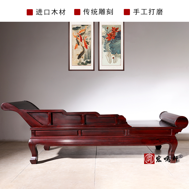 Mahogany chaise longue chaise longue chaise longue beauty tatami South American sourwood Arhat bed New Chinese-style solid wood single chaise longue bed