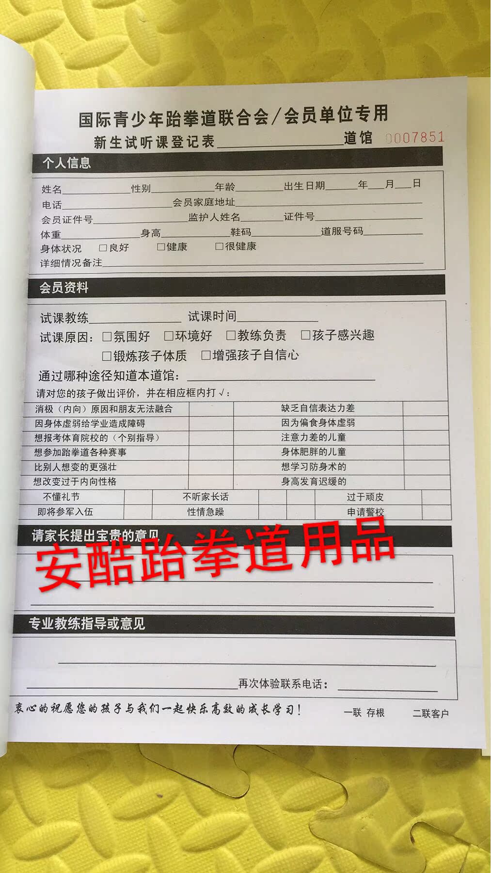 Taekwondo Receipt Taekwondo Test Listening Class Registration Form Experience Lesson Registration Form Trainees information registration form