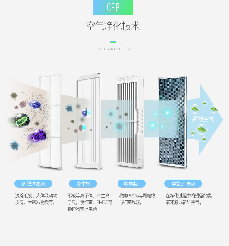 Removal of pollen, formaldehyde, smoke, dust and sterilization