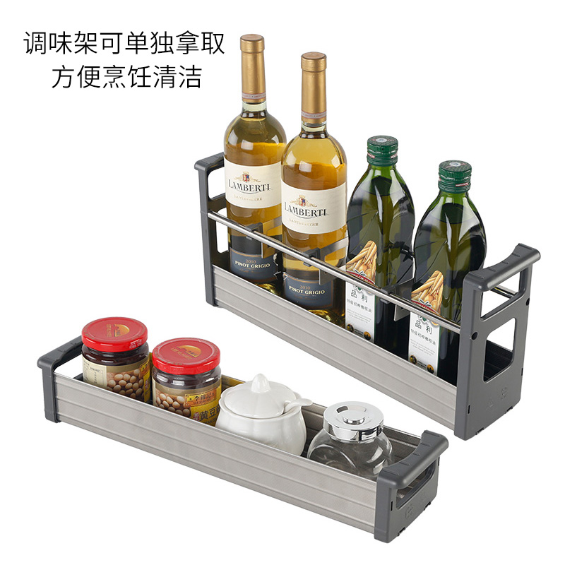 Kitchen Multilayer Pull Basket Stainless Steel Flavoring Basket Overall Cabinet Seasoned Rack with damping silent rail drawer Contained