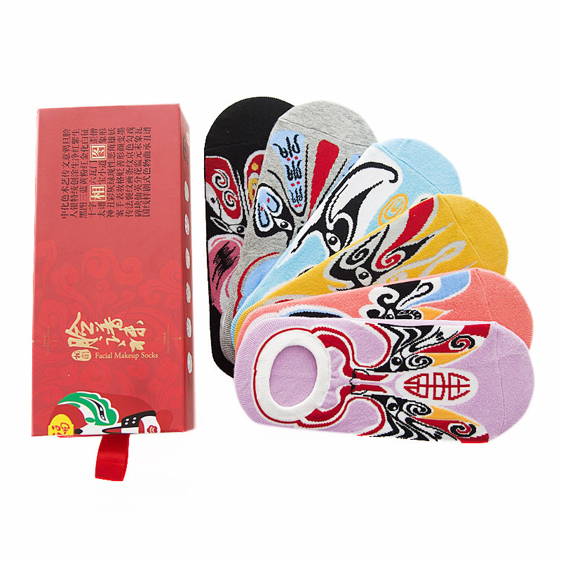 Guochao Peking Opera Facial Makeup Socks Women's Invisible Socks Summer Socks Slim Invisible Light Mouth Female Short Socks China Wind Raw Tide Socks