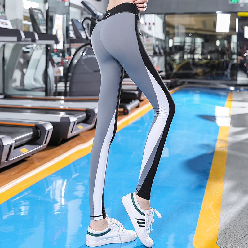 Contrasting color yoga pants women's autumn and winter thickened tight sports pants high waist elastic hip lifting gray training running pants for outerwear