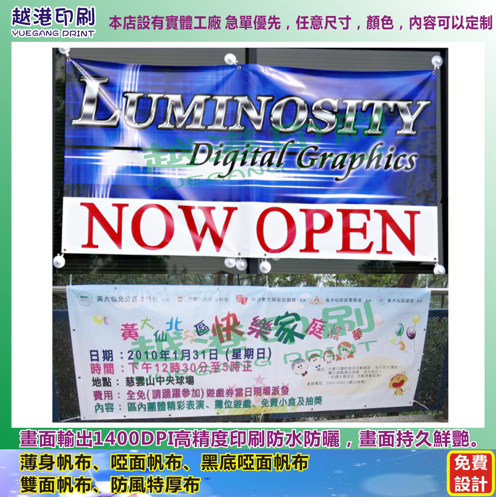Customized banner color 3x8 ft banner design canvas spray stage backdrop fabric