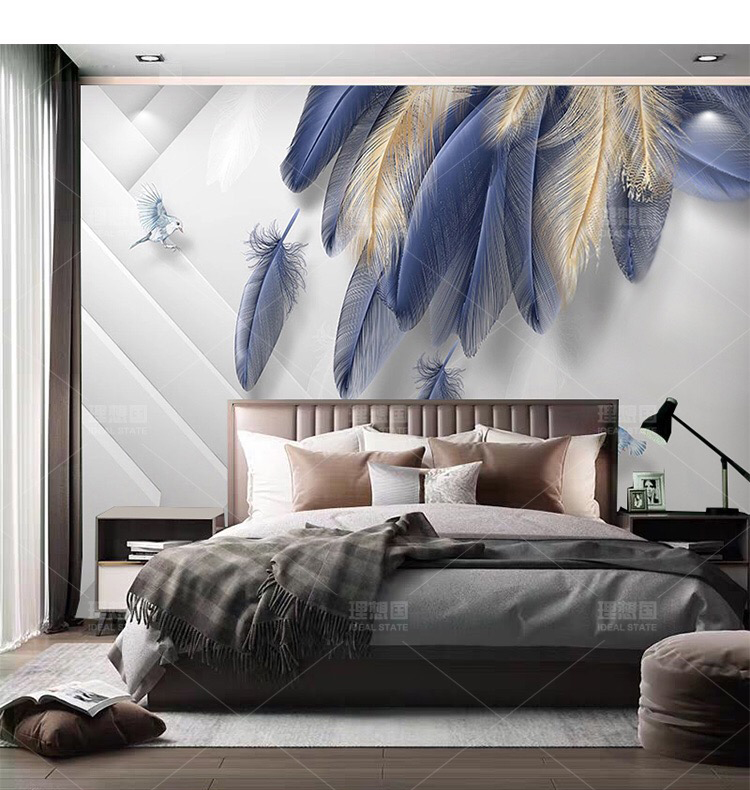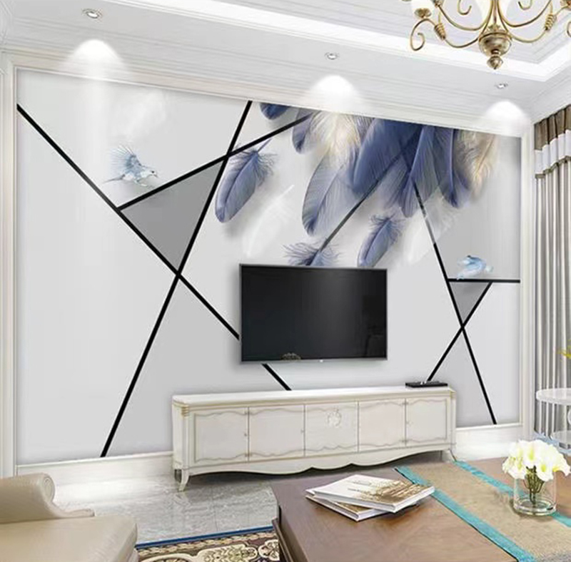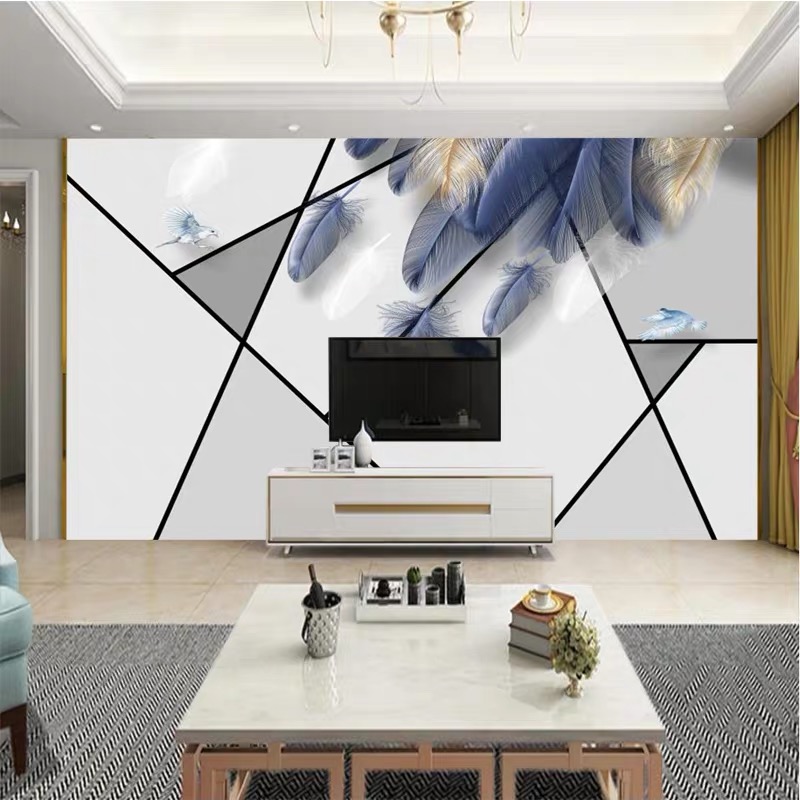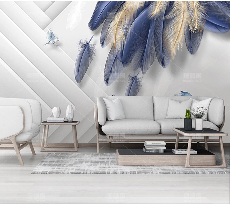 Nordic creative feather sofa wallpaper 8D TV background wallpaper living room film and television wallpaper 3d5D seamless fresco