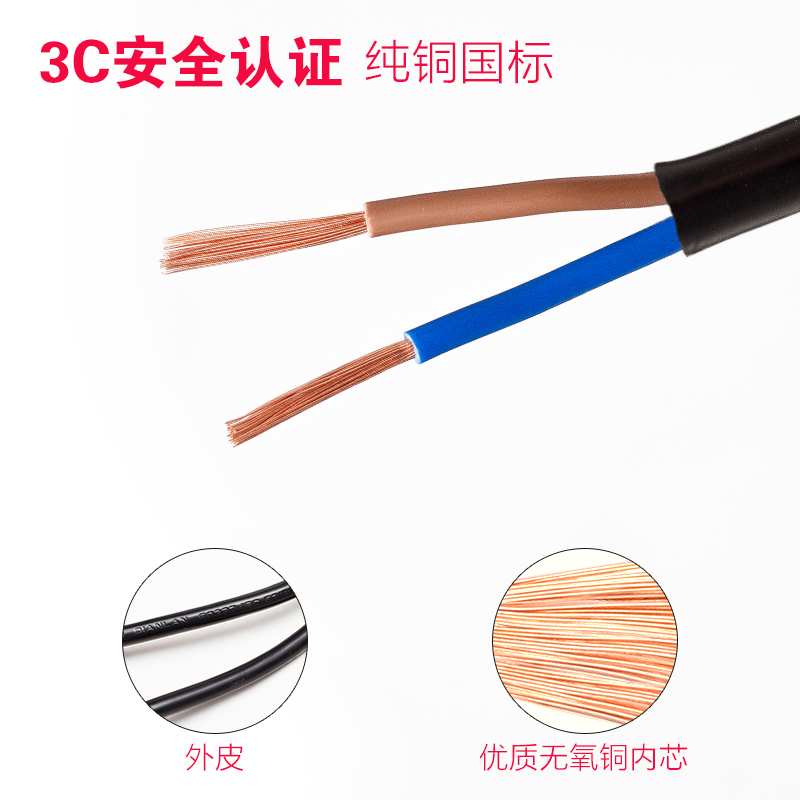Pure copper national standard 2 * 0 75 1 1 1 5 square two plug line two-core power cord electrician II-core power patch