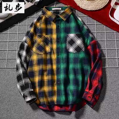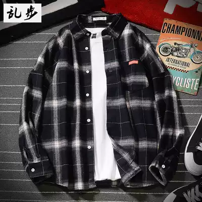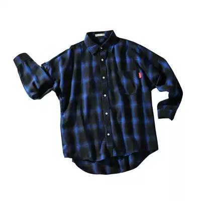 Blue and black plaid shirt jacket men long sleeve Korean version of the trend Art Harajuku casual front short back long shirt students