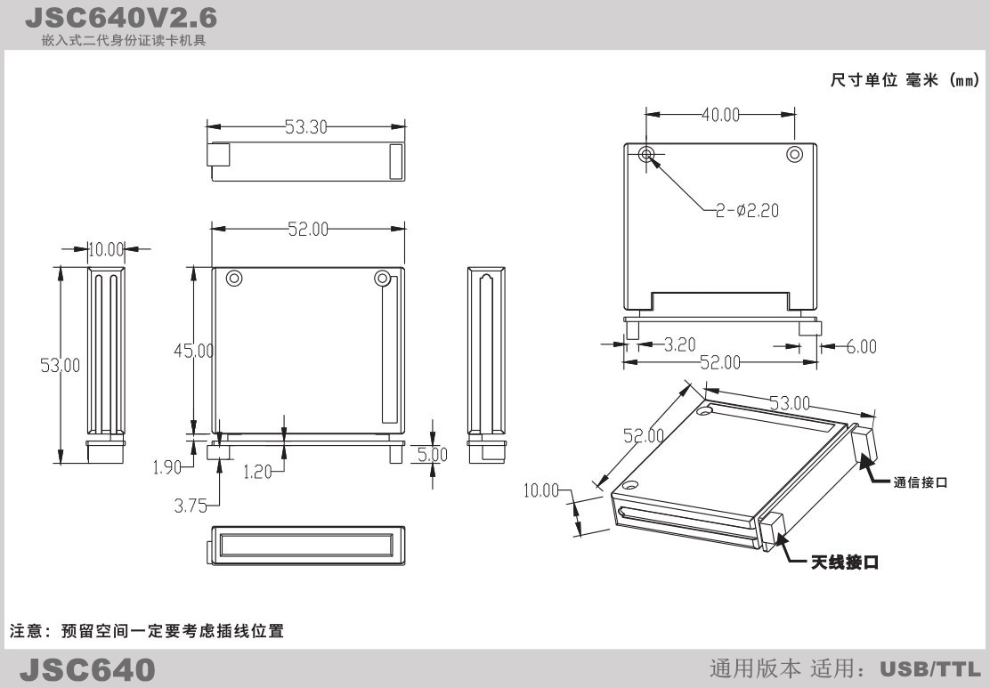 Universal embedded second generation card reading machine tool can handle MF1 non-connected CPU card serial port USB port at the same time