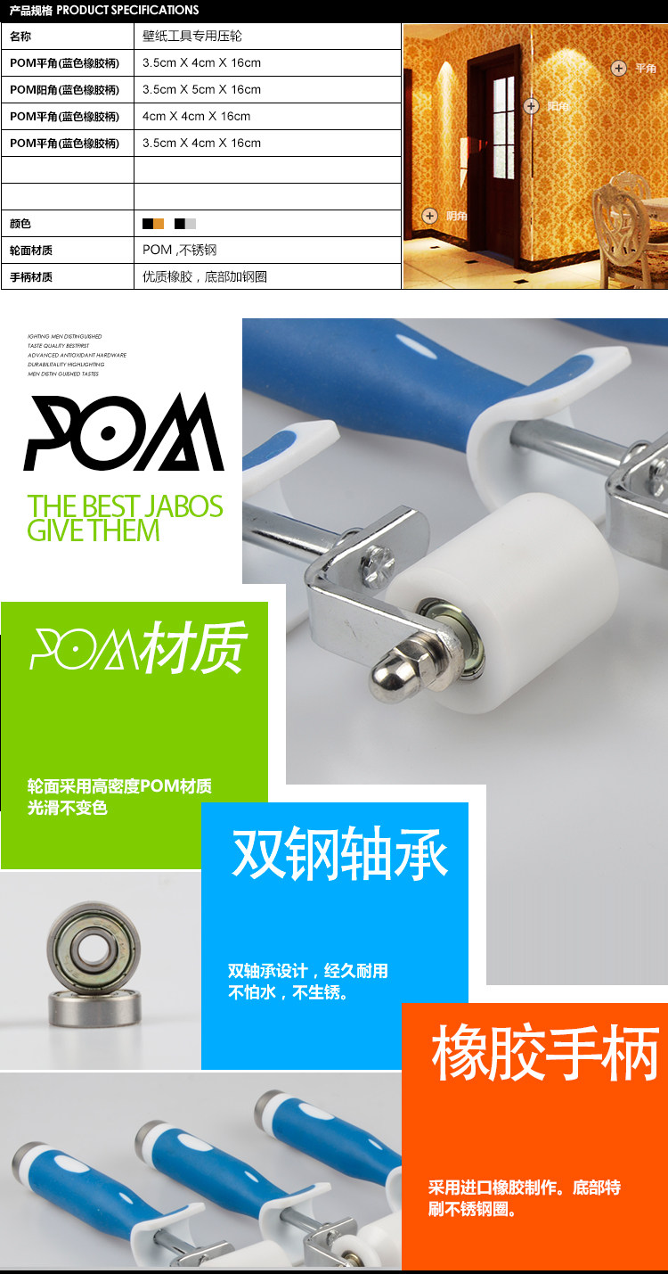 Extraordinary] special tool for wallpaper wallpaper wall cloth POM pressure wheel rubber handle seam positive angle flat pressure wheel