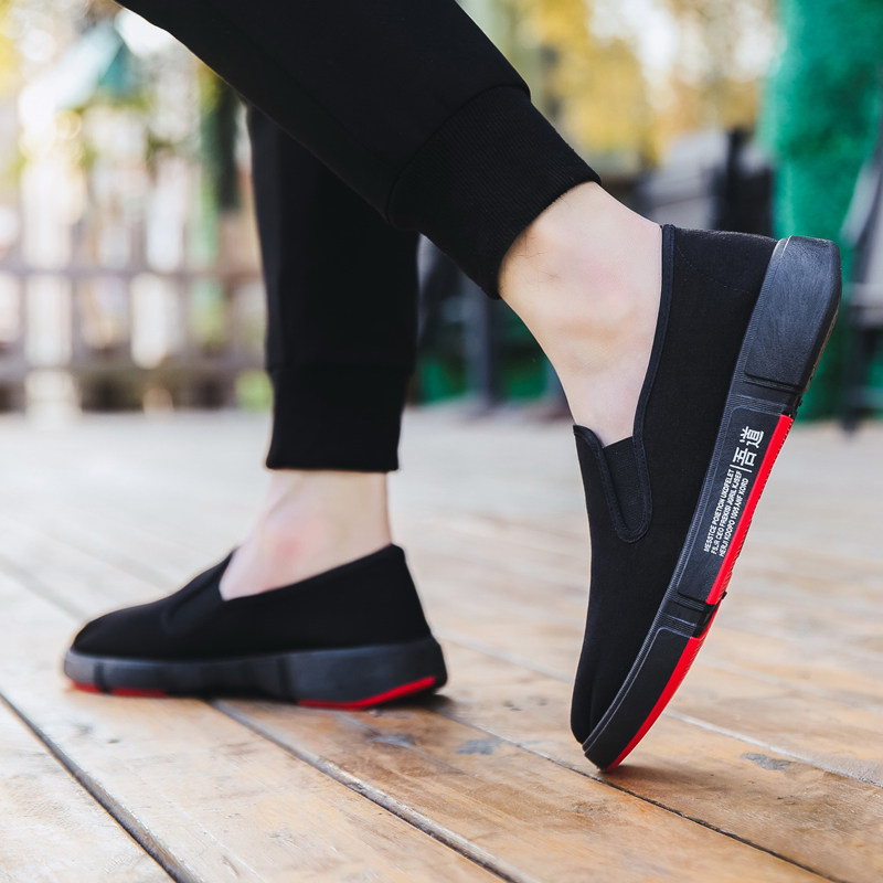 Spring and Autumn Old Beijing Black Cloth Shoes Slip-On Lazy Shoes Men's Non-slip Casual Mountaineering Sneakers Single Shoes Work Shoes