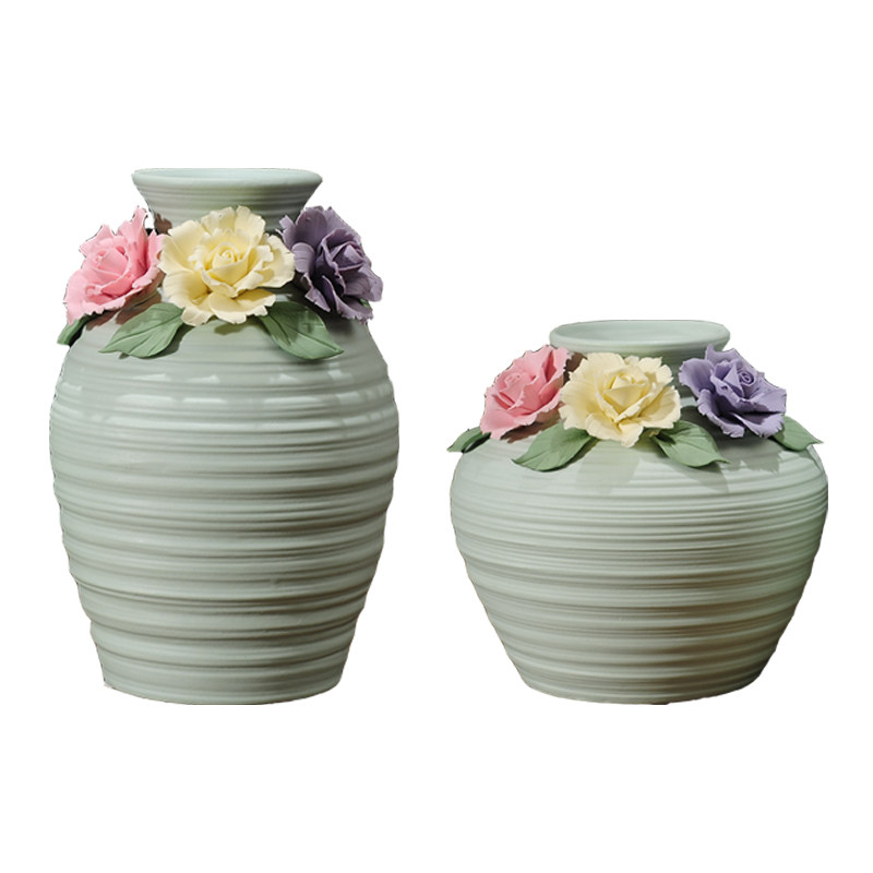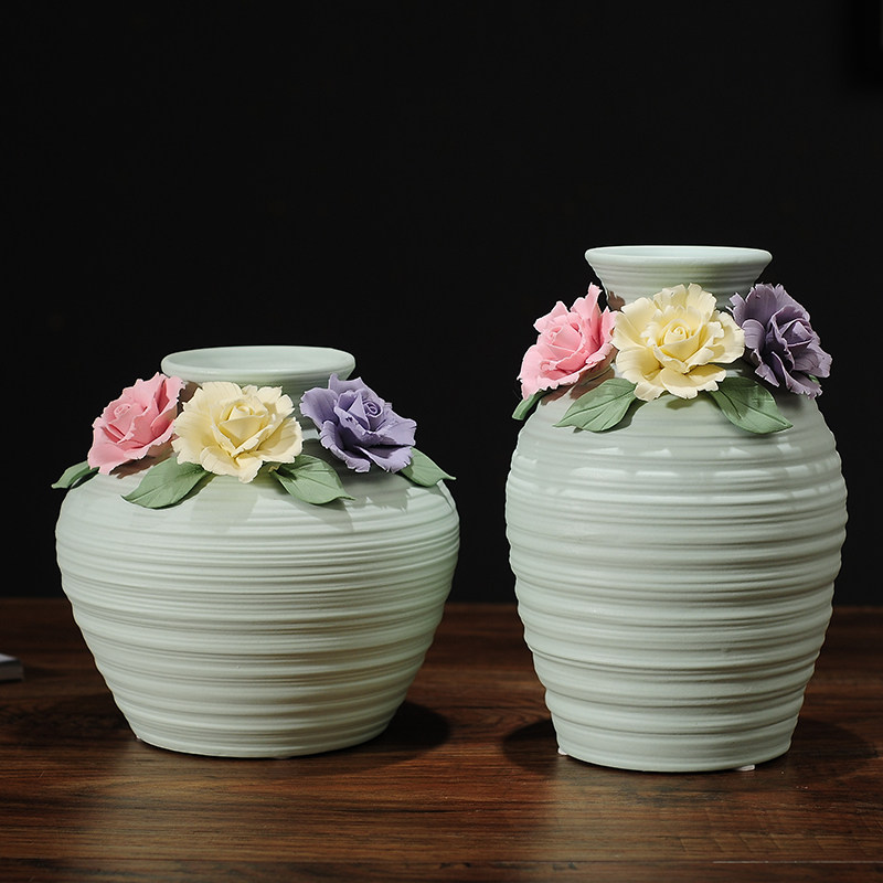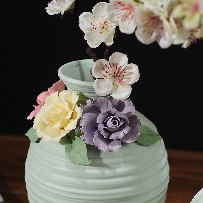 Retro Vase Ceramic Fittings Little Qing fresh flower living room Tea cabinet Creative modern home decoration