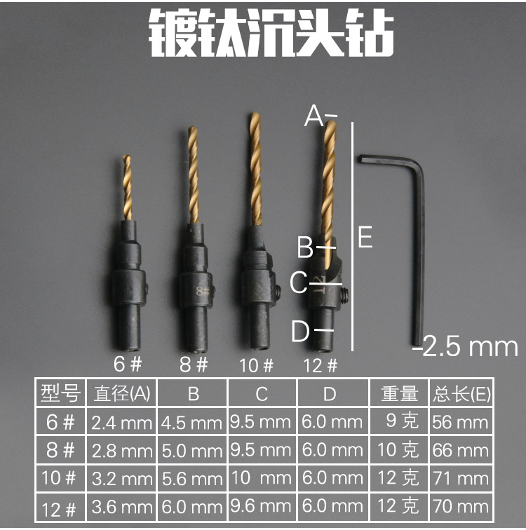Woodworking driller set hexagonal screw hardware tool sink head drill hole drill hole drill hole hole expansion