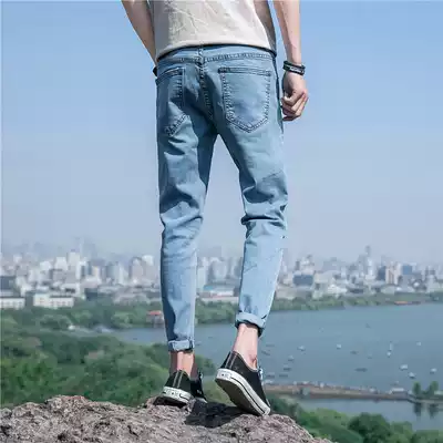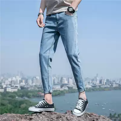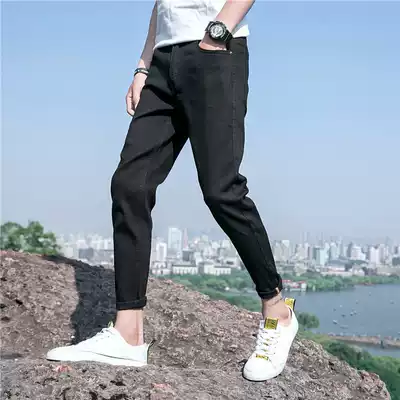 2021 summer nine-point jeans men's black tide brand slim small feet Korean version of the trend wild nine-point pants